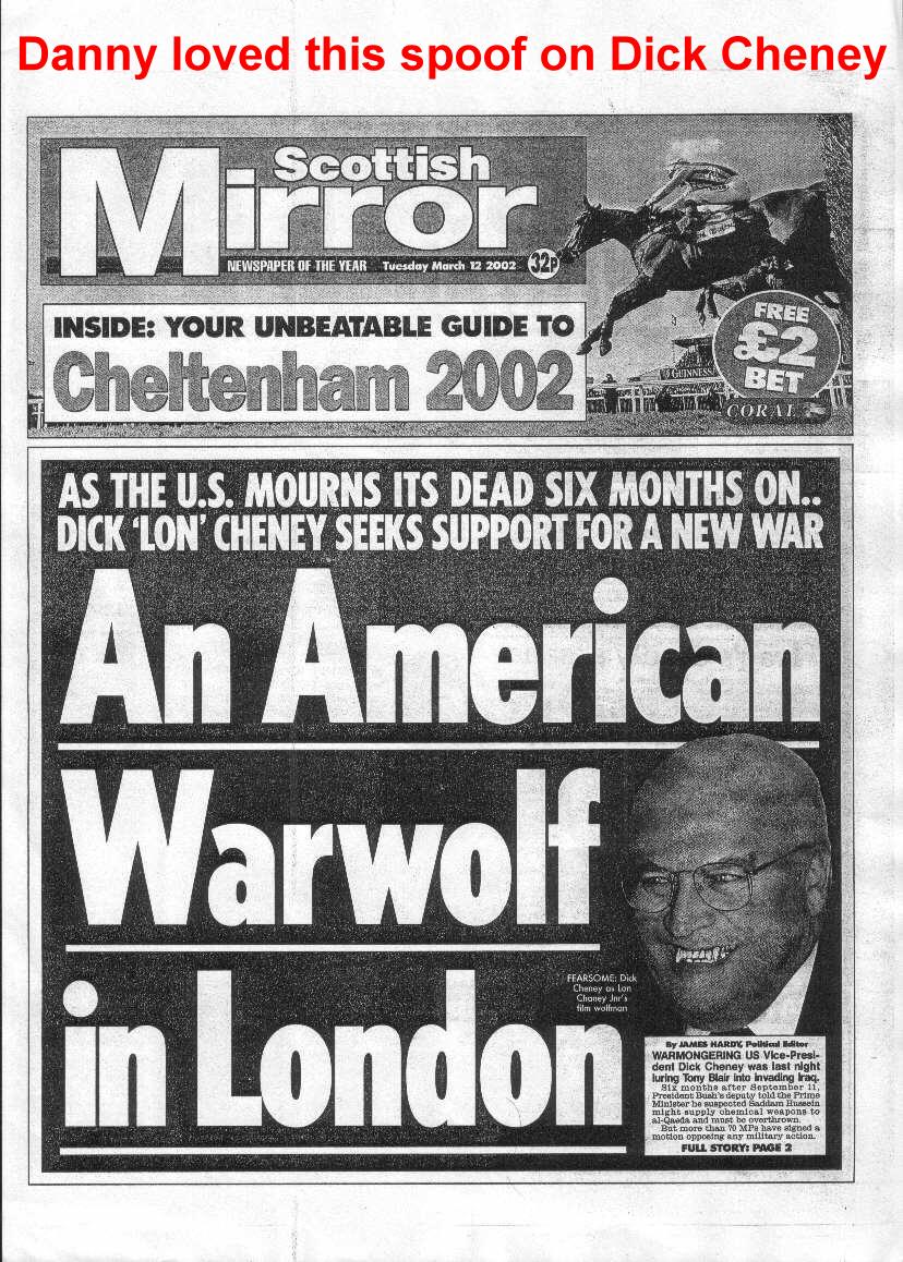I reviewed Danny’s 2004 film `WMD Weapons of Mass Deception` and helped organise a showing of it at the Mono activist’s café in Glasgow, Scotland which was attended by around 100 including many American students. They lapped it up and many wrote appreciatively to Danny which he valued. You can read the (rather lengthy) review here: