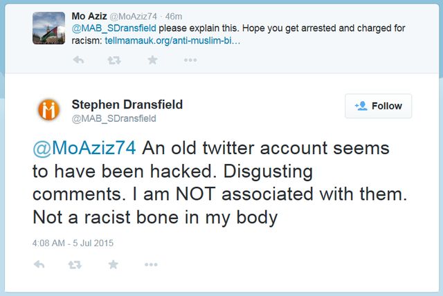 https://twitter.com/bigsteve1911/status/617428040008749056 Disclaimer: - The above information is provided so potential Muslim customers are made aware of Stephen Dransfield, Mortgage Advisor's loathing of British Muslims, so they can make an informed choice. Do not harass the doxxed EDL fascist, but simply boycott his business, if you so choose.