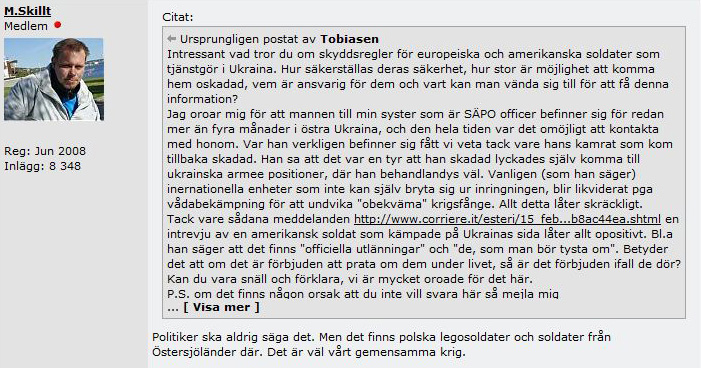 https://www.reddit.com/r/Military/comments/3g4i0i/missing_a_swedish_male_service_member/ This matches very well the reports on some ‘friendly Ukrainian shelling’ of the foreign units facing the risk of capture. - pic 7.
