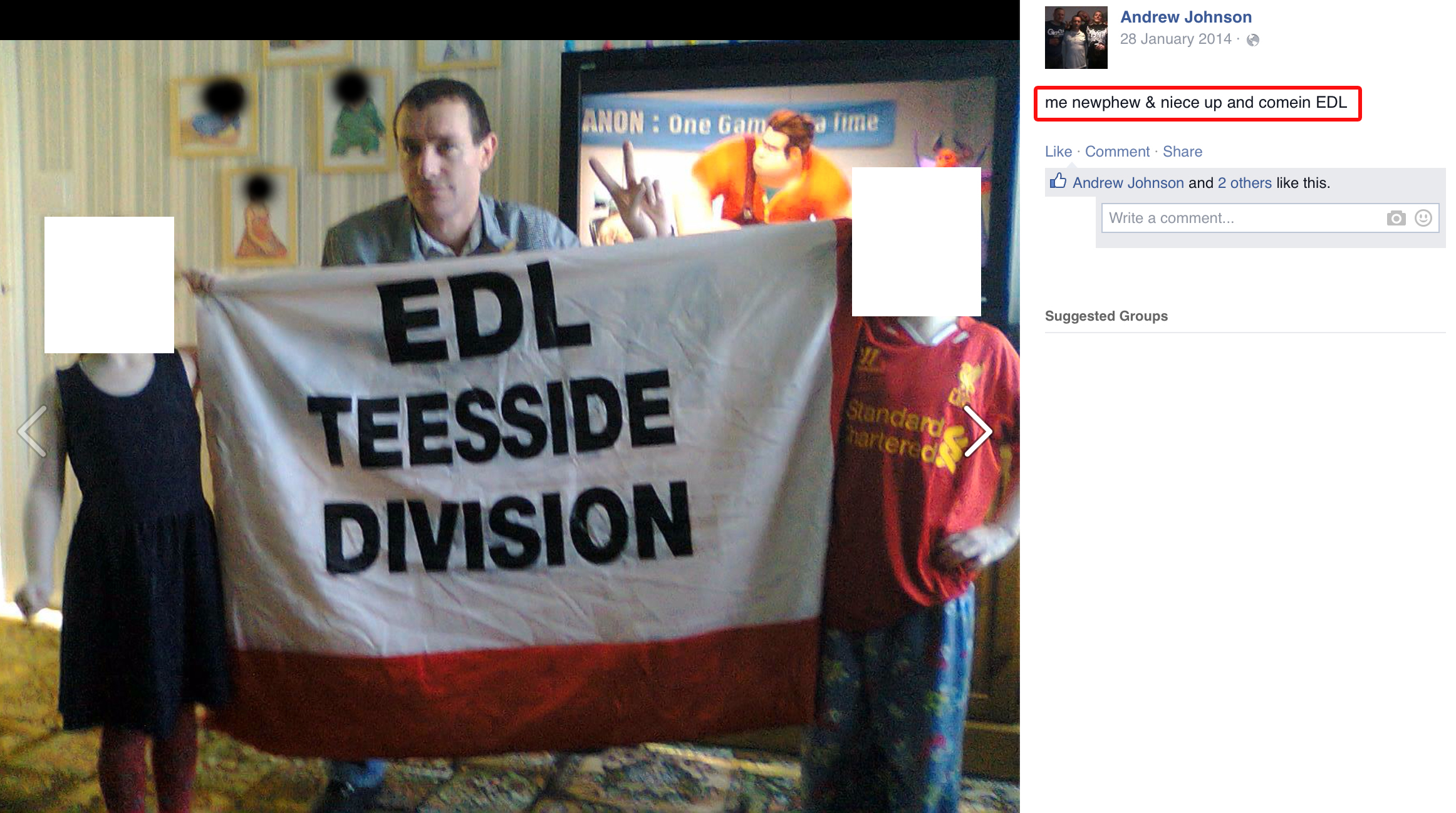 Andrew is also friends with Craig Owens who he filmed giving a Nazi salute at the North East EDL demo on the 17th May Newcastle 2014. See a video of the nazi salute here:-