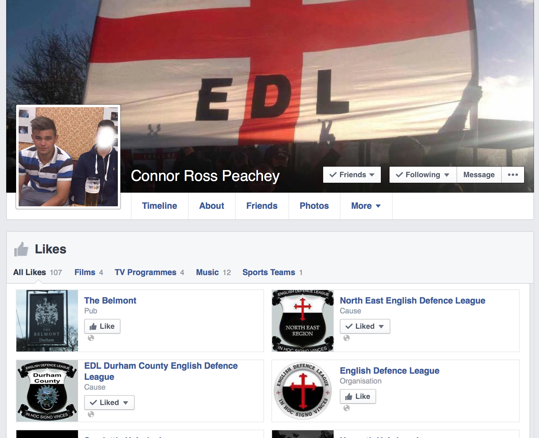 Adrian’s known to be involved with the North East EDL since January 2015 and is currently dating Claire Reah who’s also a North East EDL member (since 3rd August 2015).