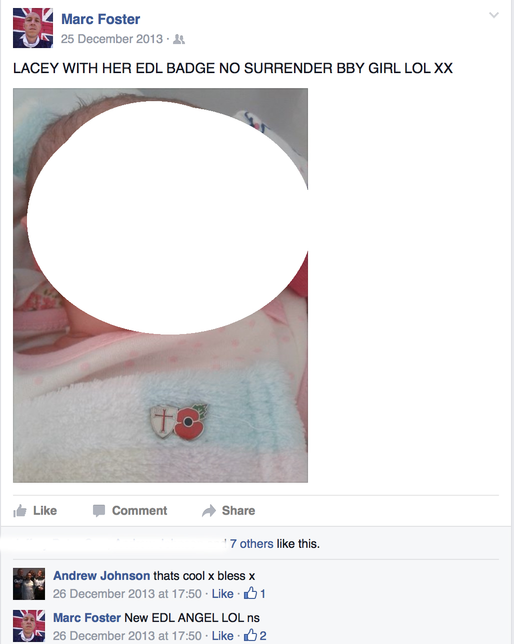 Political History:- Terry’s been involved with the North East EDL since 2013. He’s also involved with the NEI and Sunderland Defence League. He recently attended National Action’s White Man march in Newcastle and has liked Neo Nazi band Skrewdriver since 2009.