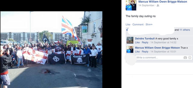 Photo from Andews profile showing Craig Owens a neo-nazi at EDL demo in May