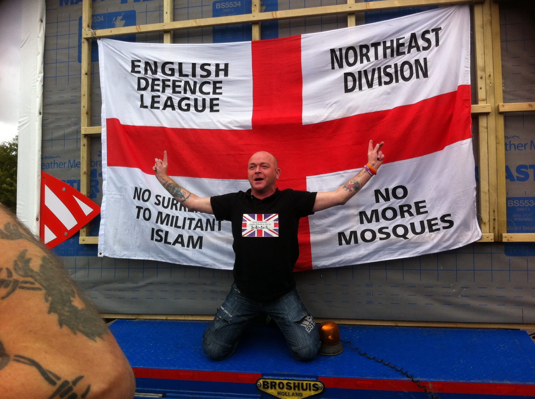 Gary Anthony Doyle with North East EDL target mosque site in Fenham