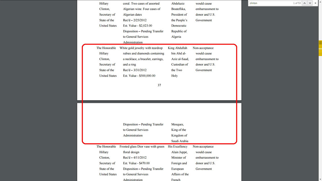 https://s3.amazonaws.com/public-inspection.federalregister.gov/2013-21264.pdf). This price is beyond the reach of reason and good manners (the majority of gifts from foreign establishment have been assessed at $ 450-650). However, they didn't forget to make a "Non-acceptance would cause embarrassment to donor and U.S. Government" note.